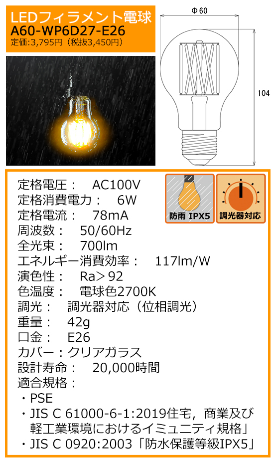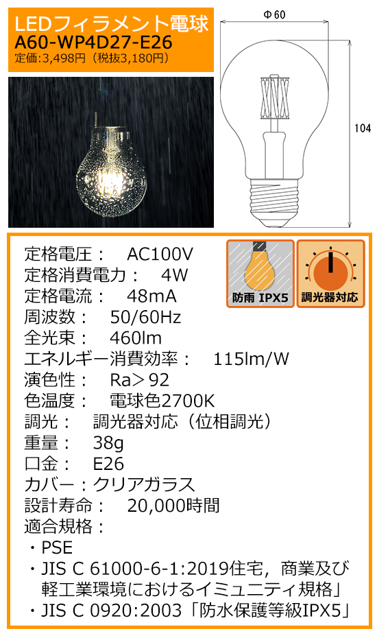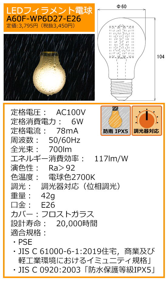 防雨仕様製品は、屋内だけでなく屋外でも使用可能(防雨仕様製品の取扱い説明書で必ず内容確認のこと)